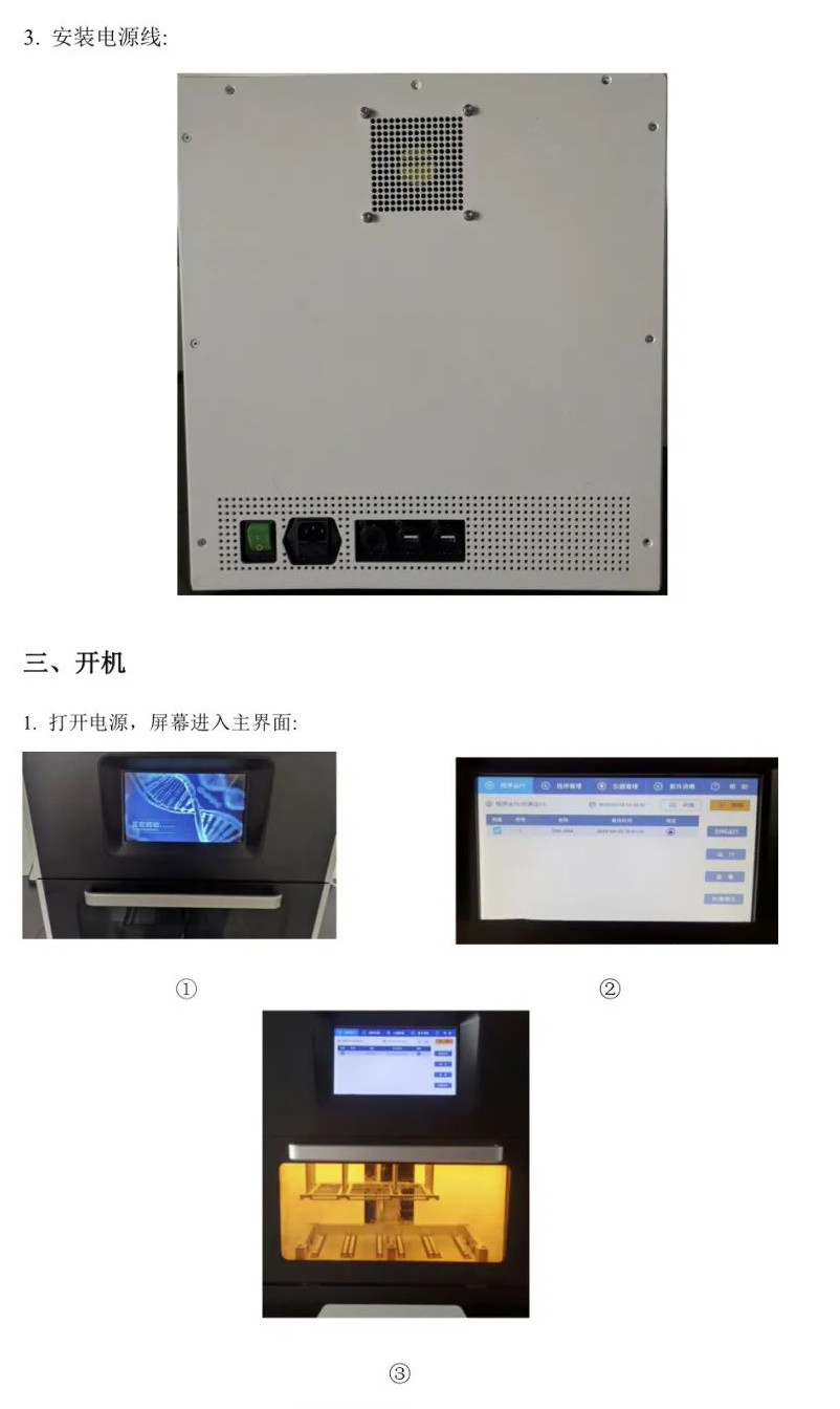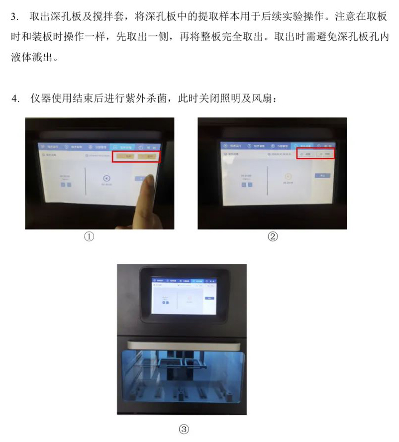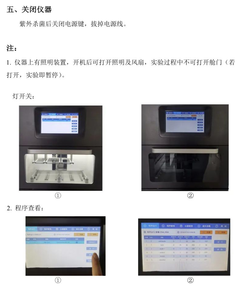 用户在使用润生RUNSUN32全自动核酸提取仪之前,对仪器的使用需有一个完整的了解。用户在运行系统之前,请仔细阅读说明书。 该核酸提取仪广泛用于常规科研、疾病诊断、基因组学、食品安全等领域。使用本仪器仅需加入样品及磁珠法全自动核酸提取试剂于96孔板中,选择或编辑适当程序后执行即可。搭配不同种类的磁珠法核酸提取试剂,可以快速提取动植物组织、血液、体液、刑事检材等样品中的DNA和RNA。