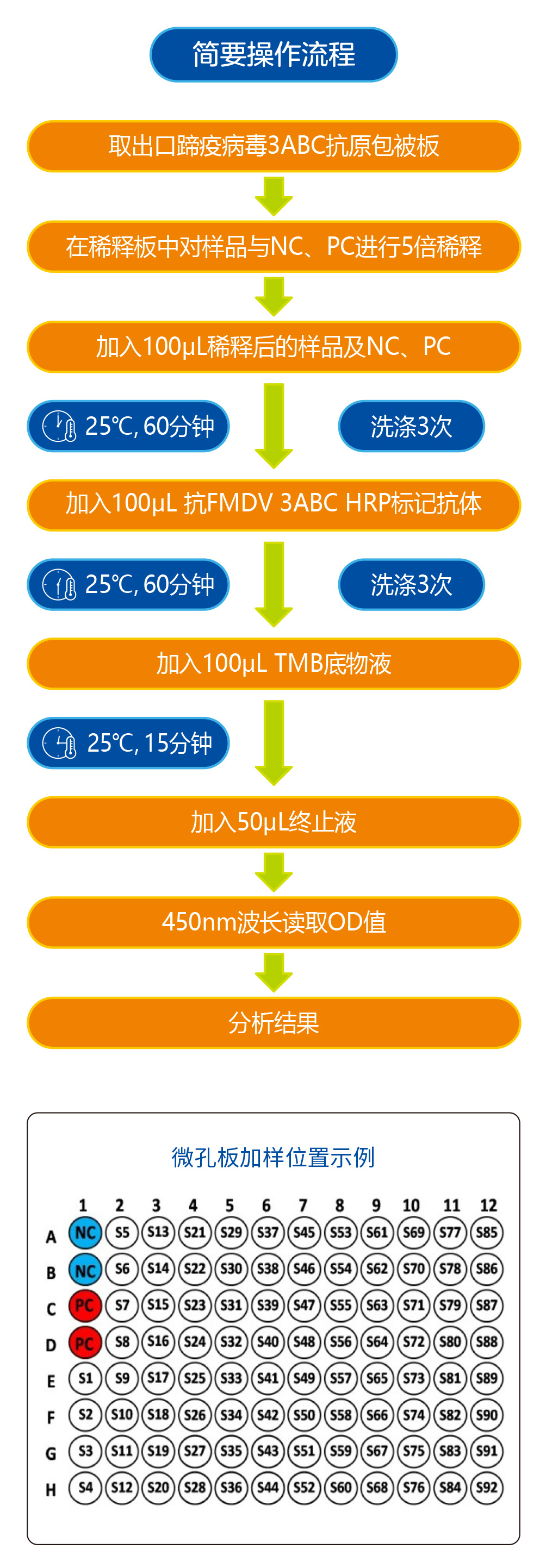 通用名称:口蹄疫3ABC抗体竞争ELISA检测试剂盒