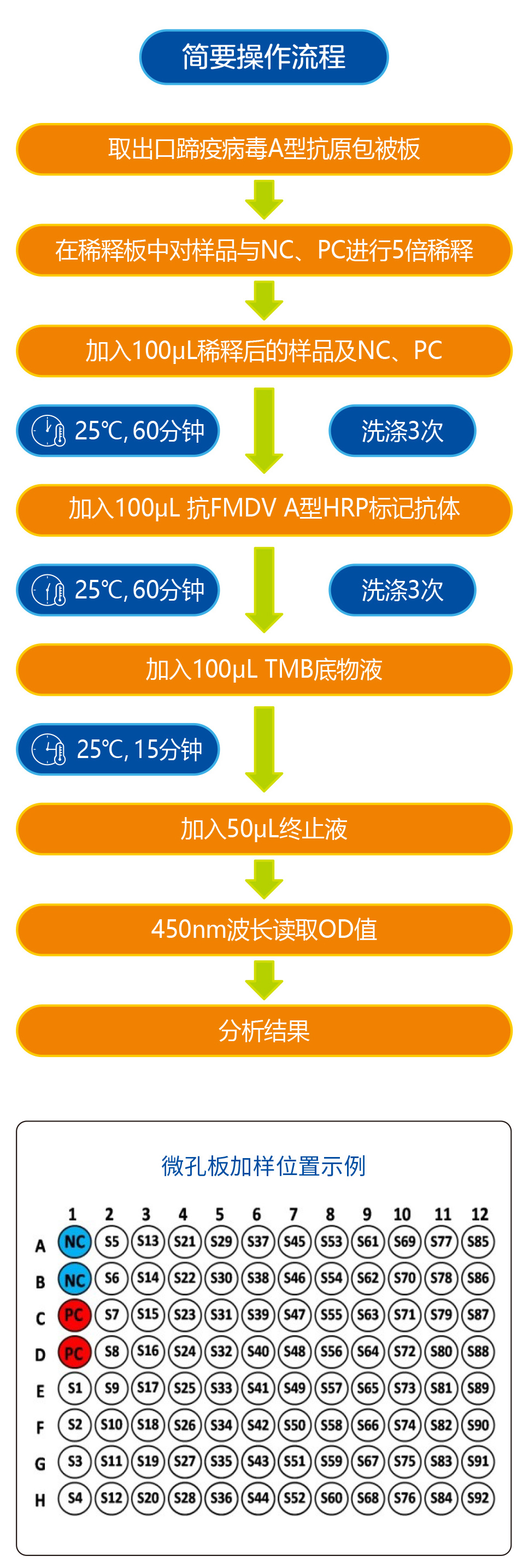 5)试验所用仪器(如:微量移液器、恒温培养箱、ELISA洗板机、酶标仪)需要在使用前进行功能检查,确保其可用性、准确性。