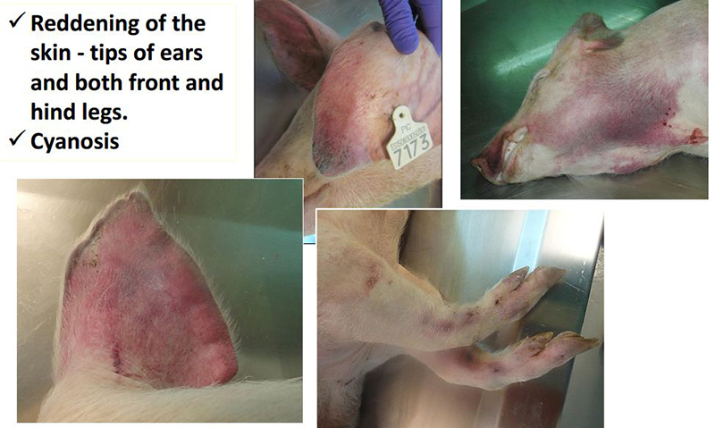 猪群发烧,聚堆,皮肤发红